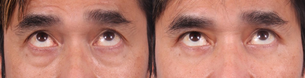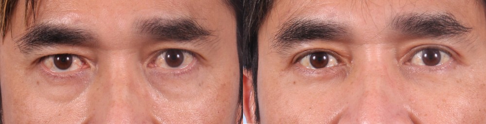 This 51-year-old male presented with concerns related to bags under his eyes. He had tried a variety of different non-surgical treatments that yielded limited benefit. He was referred to Dr. Sudeep Roy for surgical consultation. The patient was found to be a good candidate for transconjunctival (incision on the inside of the lid) lower blepharoplasty and partial fat transfer to the tear trough and cheek. This is the patient 6 weeks after surgery, looking naturally refreshed and more youthful.